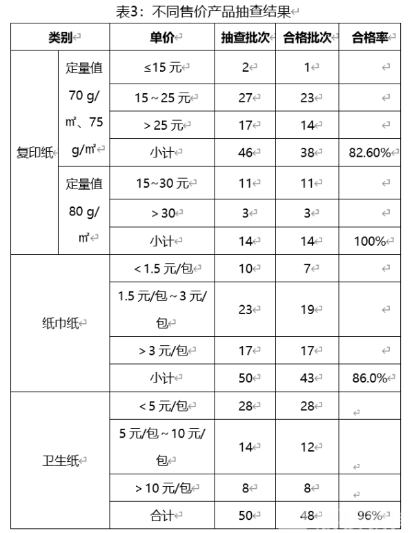 3.卫生纸。本次抽查发现2批次产品不合格,不合格指标为球形耐破度(成品层)、柔软度2个项目。其中1批次产品的球形耐破度(成品层)项目不合格,1批次产品的柔软度项目不合格。