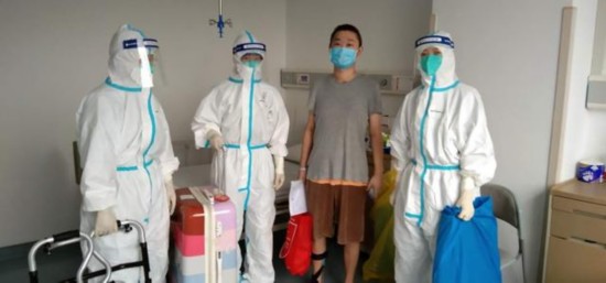5月21日,因病区调整,章玮再次转移至武汉大学人民医院东院区。感染科主任陈晓蓓对他进行了全面检查和身体评估,并再次复查核酸仍为阴性后,5月24日中午,医护人员护送章玮出院回家。