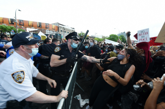 据CNN报道消息,一些抗议者29日在纽约巴克莱中心附近与警方发生冲突,有抗议者向警察投掷水瓶等杂物。