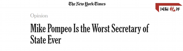 “他是美国历史上最差的国务卿,没有取得任何外交成就。”《纽约时报》网站近日发布的一篇文章这样痛斥现任国务卿蓬佩奥。这与《华盛顿邮报》3月底指称蓬佩奥是“史上最差国务卿之一”的评价相比,显然更清醒了,表明随着美国国内疫情日趋严峻,美国社会越来越认识到蓬佩奥对美国民众生命与国家利益的巨大危害。