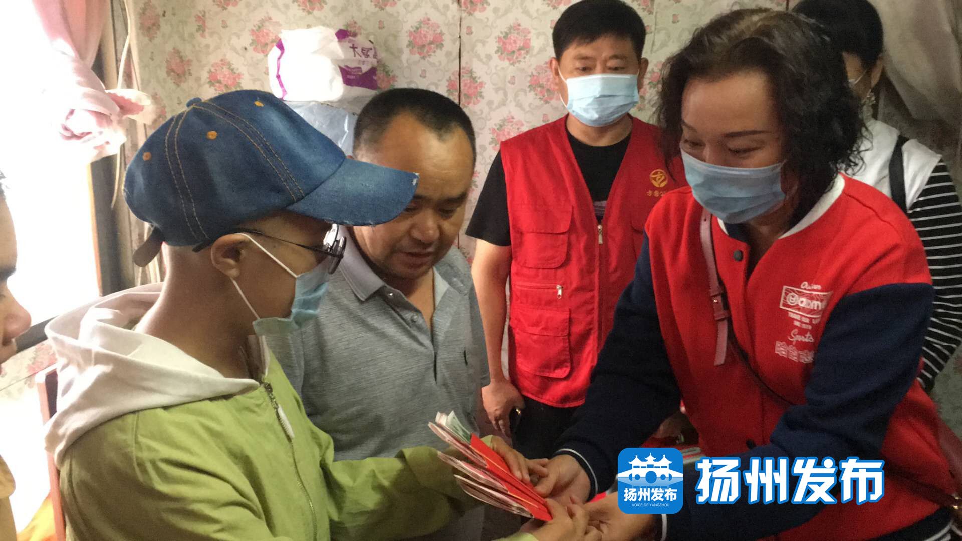 今天上午,扬州公益组织志愿者来到江都区,为白血病少女李乡林捐赠善款和物品,让李乡林无比惊喜与感动。