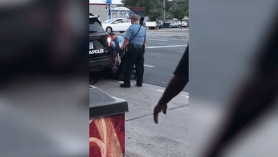 46岁的明尼阿波利斯男子弗洛伊德,被怀疑使用假钞。视频显示,一名警察在执法过程中,将自己膝盖压在了弗洛伊德的脖子上。弗洛伊德则一直向警察哀求:“求求你、求求你、求求你,我透不上气……”。