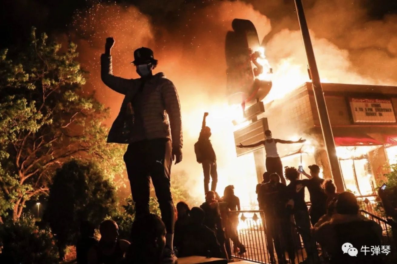 人们出离愤怒了。在事发地明尼阿波利斯,大批民众走向街头,警察局被焚毁,大量商场、餐馆、酒吧等被劫掠。
