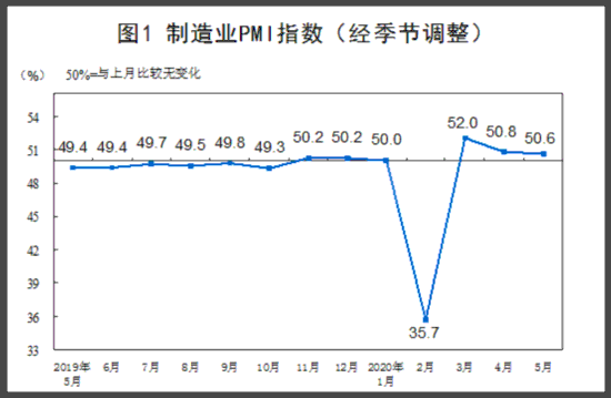 5月31日上午,国家统计局公布5月份中国制造业采购经理指数(PMI)情况。此次公布的数据显示,本月制造业PMI为50.6%,比上月回落0.2个百分点。