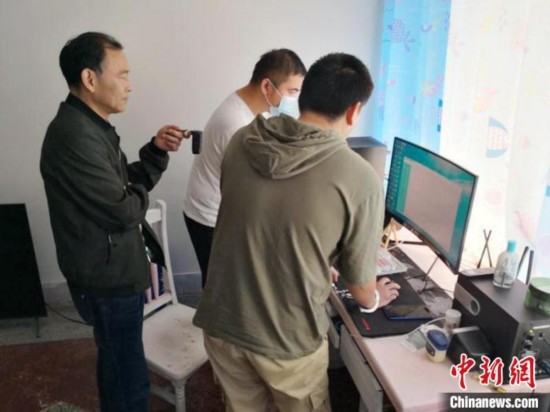 图为民警在兰某所使用的电脑上面取证 龚轩 摄