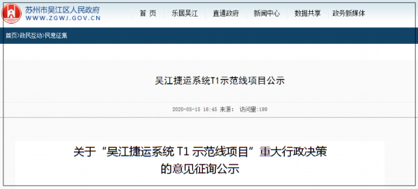 好消息!好消息!吴江捷运系统T1示范线来了!目前正在公示阶段。