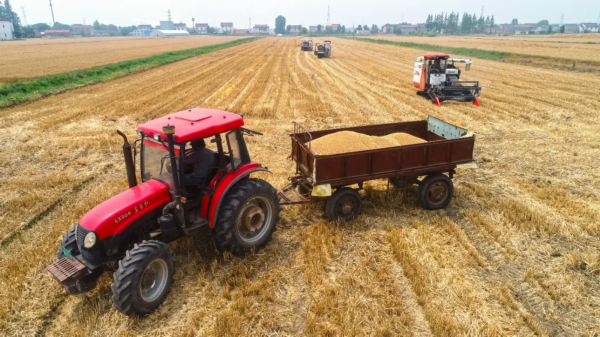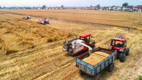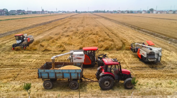 当前,南通市55万亩小麦陆续开镰收割,农户们抓住晴好天气抢收小麦、加紧晾晒,确保颗粒归仓。