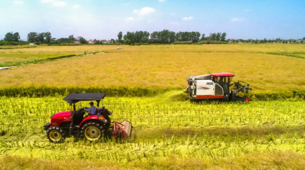 俯瞰海安大地,广袤的田野上收割机往来穿梭。