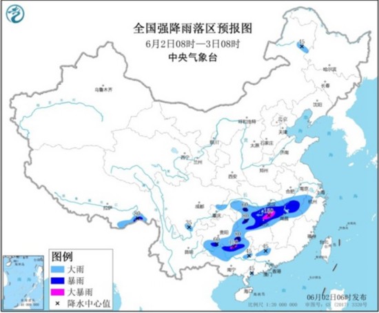 中央气象台6月2日06时发布暴雨蓝色预警:
