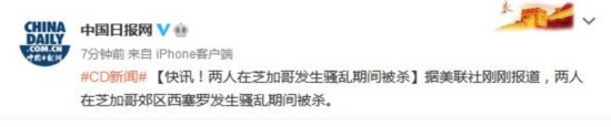 【快讯!两人在芝加哥发生骚乱期间被杀】据美联社刚刚报道,两人在芝加哥郊区西塞罗发生骚乱期间被杀。
