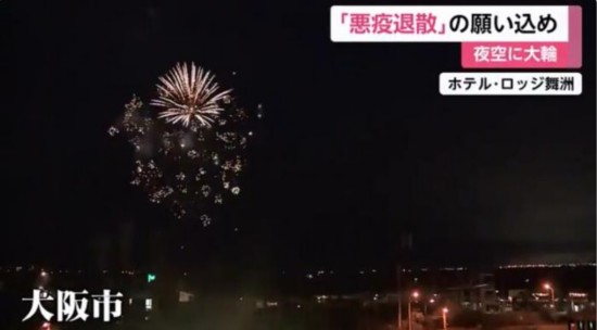 有一名观看烟花的大阪市民表示,“没想到能看到烟花。希望正在前线努力(工作)的医护人员看到这(烟花)后,也能得到激励”。