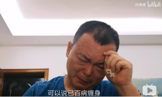 2019年12月10日,该用户在B站发布了一个情绪失控的哭泣视频。视频中,他自称36岁患肺癌,母亲为了照顾百病缠身的父亲突然中风住院,家里还欠着几十万外债。