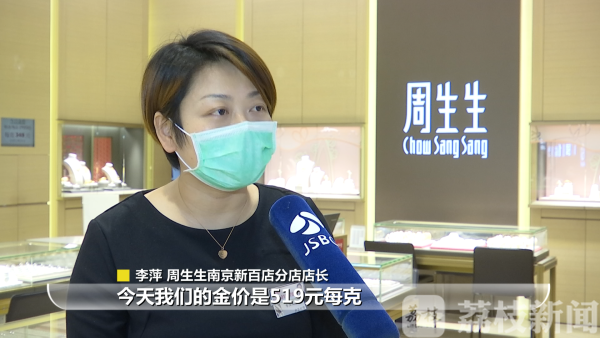 周生生南京新百店分店店长李萍介绍,今天品牌的金价是519元每克,较之前相比应该是平稳的,上个月差不多在520元每克,最高的时候达到了540元每克。