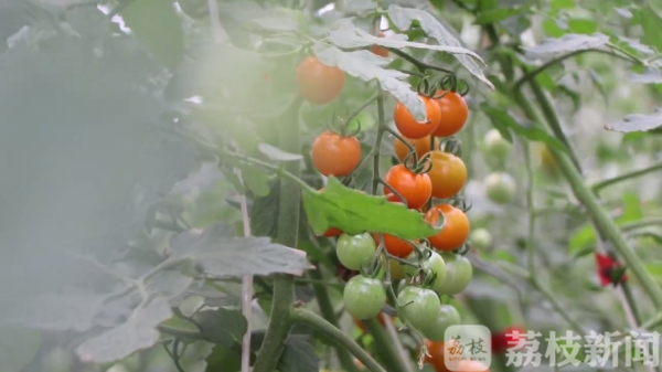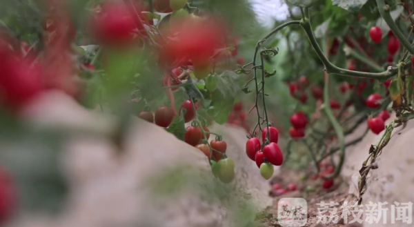 在句容市白兔镇樊忠家庭农场大棚里,采用最新吊栽技术种植的红、黄、绿等色彩斑斓的小番茄挂满枝头,走进大棚,仿佛进入了一个彩色世界。