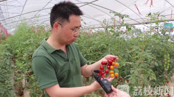 镇江市农业科学院科技服务中心主任王建华介绍,不少品种都是最新从日本引进过来的,糖度能达到8到9,目前这个大棚里有10种小番茄种在一起,这样才能有所比较,哪些比较好养活,哪些口味更好。