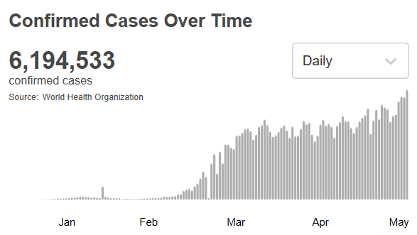 世卫组织:全球新冠肺炎超过619万例