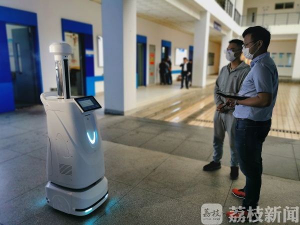 吴杰是该机器人研制的主要参与人,从南京工程学院毕业后,他创办了一家公司从事机器人研究。这款校企联合研发的消杀机器人,学校提供研发力量和先进科学设备,公司为学生提供实践平台并吸纳毕业生共同研发。目前该机器人正在等待相关部门验收,合格后即将上市。