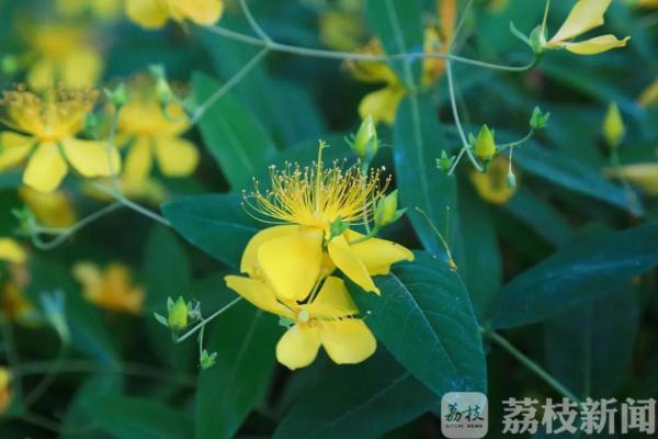 行走在钟山,不难发现,花色金黄的金丝桃,正明艳艳地开着,热烈而灿烂。