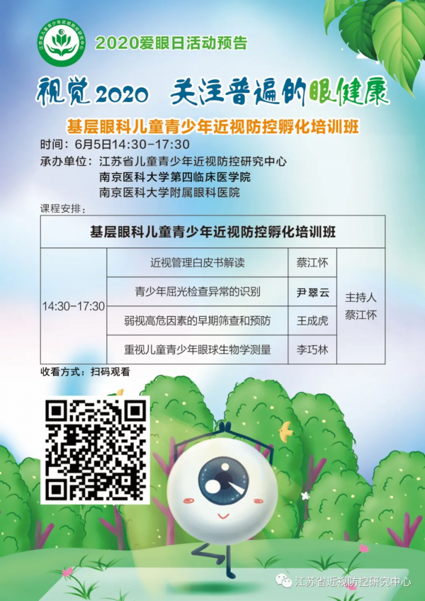承办单位:江苏省儿童青少年近视防控研究中心、江苏省疾病预防控制中心、南京医科大学附属眼科医院