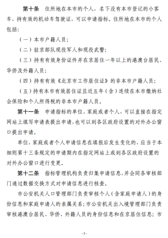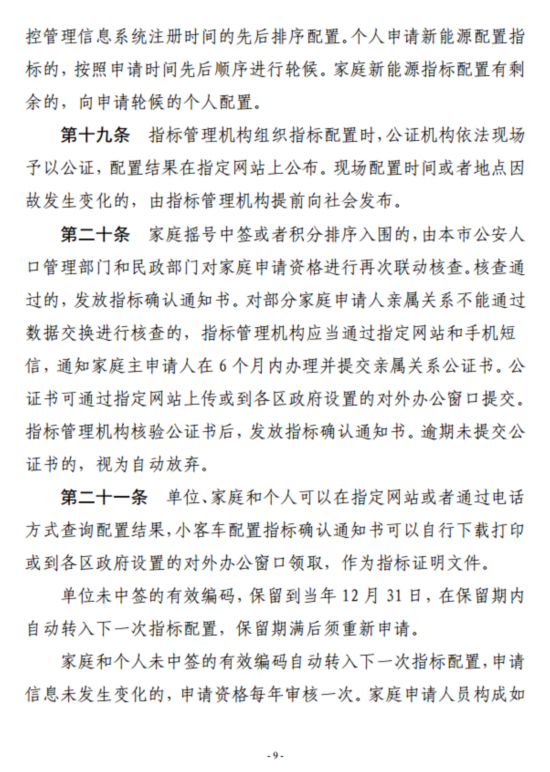 第五条 指标调控管理机构应当向取得配置指标的单位、家庭主申请人和个人出具指标证明文件,并公布指标配置结果。