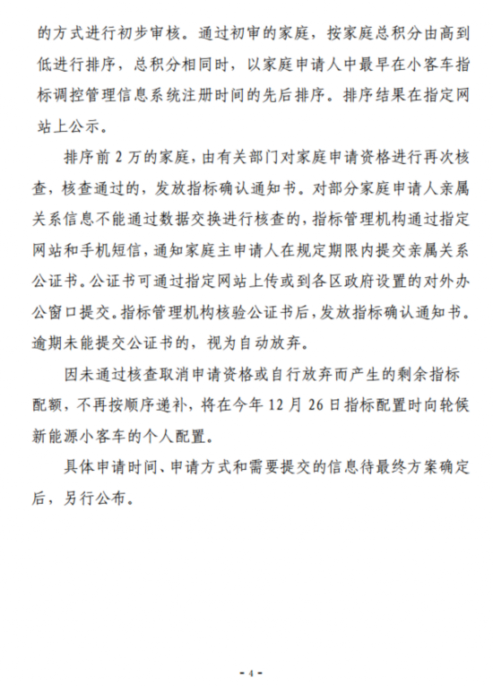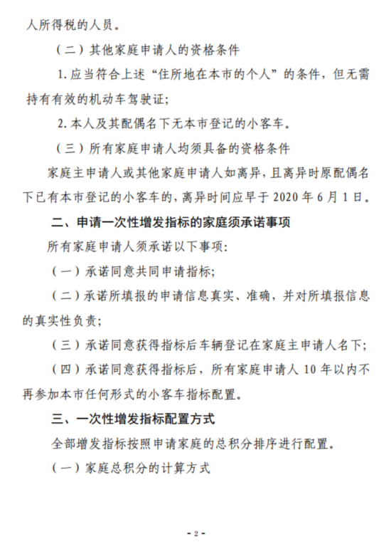 为落实中央关于统筹推进疫情防控和经济社会发展的有关决策部署,拉动消费、稳定经济、切实增强市民的获得感,市政府决定今年下半年一次性增发2万个新能源小客车指标,全部向“无车家庭”配置。具体配置办法总体上与政策优化方案中关于按家庭积分排序配置新能源小客车指标的方案保持一致。根据征求意见修改完善后,将尽快启动实施,让2万个“无车家庭”尽早受益。