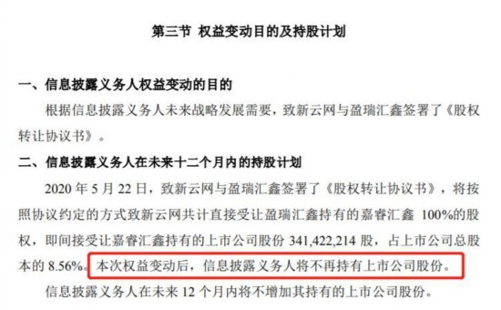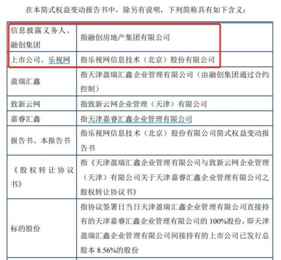 6月3日晚间,乐视网披露融创集团发布《简式权益变动报告书》,天津盈瑞汇鑫企业管理有限公司(下称“盈瑞汇鑫”,融创集团控制)与致新云网企业管理(天津)有限公司(下称“致新云网”)于5月22日签署《股权转让协议书》,致新云网受让盈瑞汇鑫持有的天津嘉睿汇鑫企业管理有限公司(下称“嘉睿汇鑫”)100%的股权,转让价格为0元。