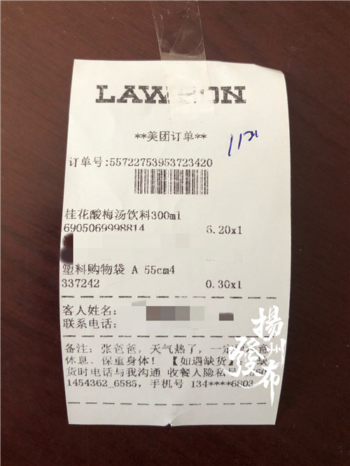 张忠来接过外卖,仔细查看包装袋上的订单,终于找到了答案:原来这是在南京上学的“干儿子”小蒋送来的一杯酸梅汁。