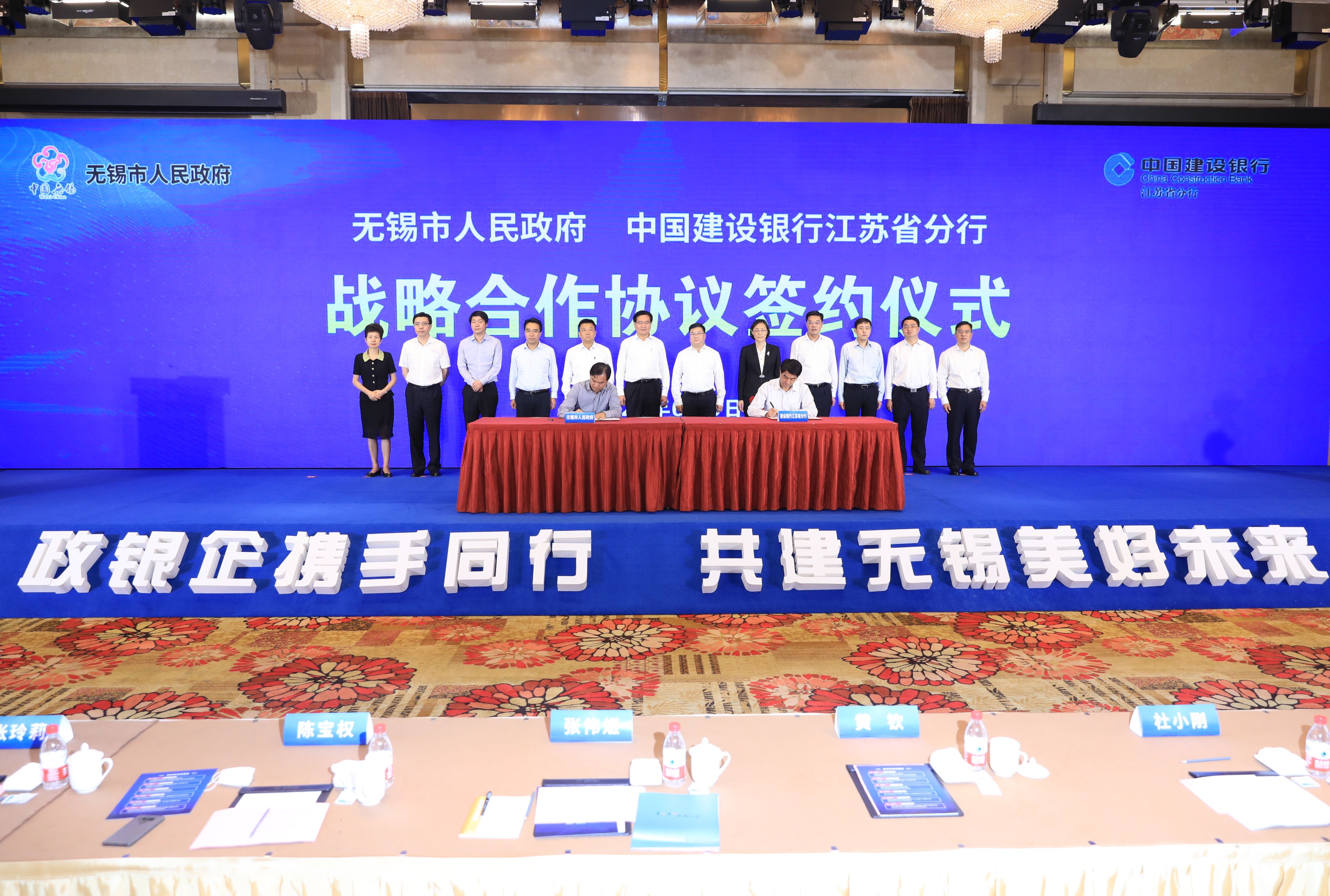 张伟煜在致辞时说,无锡是全国最具创新能力和发展潜力的区域之一,是江苏经济的领跑者、产业发展的风向标,在“一带一路”建设和长江经济带发展、长三角区域一体化发展等国家战略中扮演着重要角色。建设银行江苏省分行将以此次签约为契机,进一步增强融资保障能力、服务建设能力、战略深耕能力,全力服务无锡经济发展,助力无锡成为“产业素质”不断厚植、“三大经济”持续升温、“创新浓度”快速集聚的新高地,为无锡高水平全面建成小康社会作出应有贡献。当天,建设银行无锡分行与市行政审批局签署“智慧城市成全e站”项目合作协议,与市住房和城乡建设局签署“数字房产”项目合作协议,与无锡产业发展集团有限公司签署并购重组等业务支持综合授信100亿元合作协议,与无锡地铁集团有限公司签署重大基础设施建设项目支持综合授信200亿元合作协议,与江苏资产管理有限公司签署战略合作协议,与无锡市金融投资有限责任公司签署基金组建合作协议,与无锡智慧城市建设发展有限公司签署“灵锡APP”项目合作协议,与SK海力士半导体(中国)有限公司、江阴天江药业有限公司签署合作协议。