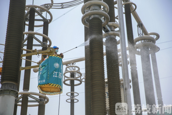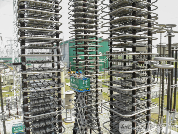 我苏网讯 6月3日,在江苏盱眙±800千伏淮安换流站内一番忙碌的景象,江苏省送变电有限公司员工顶着36℃的高温正在如火如荼开展年度检修工作。