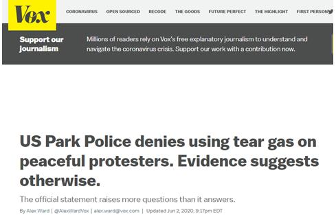 Vox:美国公园警察否认对抗议者使用催泪瓦斯,有证据表明并非如此。