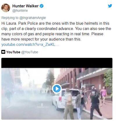 然而,福克斯新闻网却发现,美国公园警局(USPP)在2日的一份声明中却承认使用了烟雾罐和胡椒喷雾。USPP在2日表示:“随着许多抗议者开始变得有攻击性,持续向警方扔东西,并试图抢夺警察的武器时,警方随后使用了烟雾罐和胡椒喷雾。”