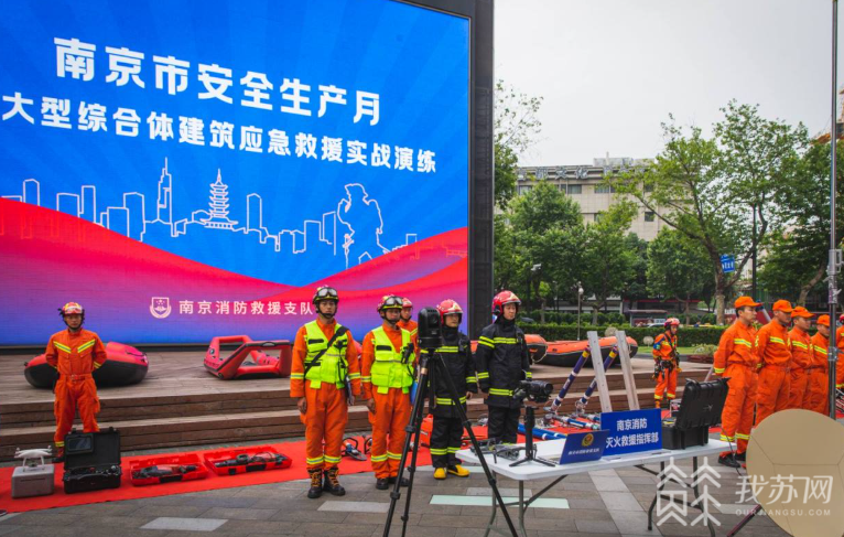 我苏网讯 为推进全市“安全生产月”活动纵深开展,6月5日上午,南京市政府在鼓楼区荔枝广场举行南京市安全生产月暨大型综合体建筑应急救援实战演练活动。南京市市长韩立明、常务副市长杨学鹏等市领导莅临现场观摩指导。