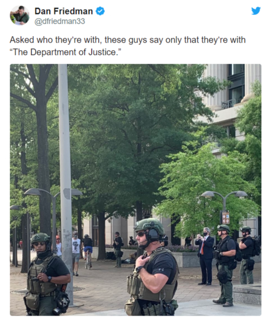 据美国“商业内幕”网站消息,在美国总统特朗普宣布将集中力量控制全美各地抗议后,政府已经部署了不同的军队和联邦执法部门人员。然而,无论是特勤局、华盛顿警察还是军队士兵通常都很容易辨认。然而,近期的巡逻人员中还出现了大量的联邦机构人员,很多都不能确定其归属和来历。