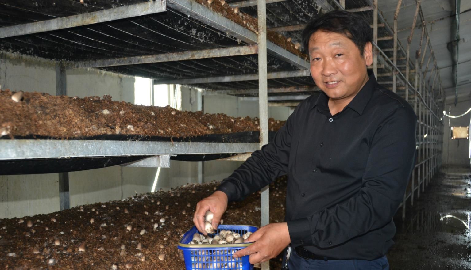 在穿城镇路东村村民尤权创办的食用菌基地,场上堆满秸秆发酵料、玉米芯和食用菌下脚料,23个灰白色的菇棚有序排列,菇棚内工人正在采摘双孢菇和草菇。尤权告诉我们,23个蘑菇大棚内上下种植六层菇,一年四季都产蘑菇,由于他的菇质好,价适中,市场一直供不应求,商贩要“预约”才能拿到货。