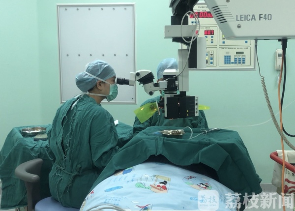 梅瑞庆的主治医生、苏州大学附属理想眼科医院眼表与角膜科主任赵庆亮介绍:“今天第一天检查的角膜都是透明的,视力能在0.1左右,基本上正常生活的视力不受影响。经过一段时间的恢复以后,会达到更好的视力。”