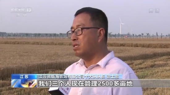 江苏省临海农场有限公司十大队队长 徐士忠:我们三个人现在管理2500多亩地,在以前是不可以想象的,随着现在智能水平不断提高,我们有更多的时间去做更多的事情。