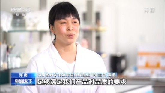 河南省新乡市延津县克明面业检验主管 裴娜:今年使用的进口小麦下降到5%。家门口的小麦足够满足我们产品对品质的要求,而且供货稳定,我们什么时候用什么时候有,我们心里很踏实。