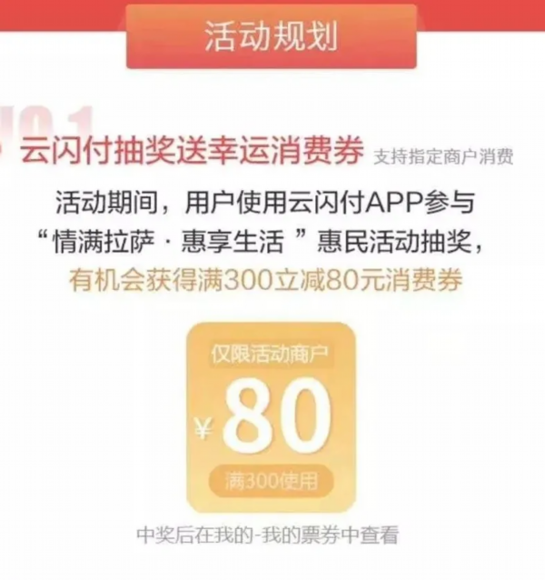 打开云闪付 点进首页的奖励中心 进入领券【可领取“情满拉萨 惠享生活(通用消费券)”3张、“情满拉萨 惠享生活(超市消费券)”1张、“拉萨社保卡消费券”2张】 消费达到相关标准即可抵现