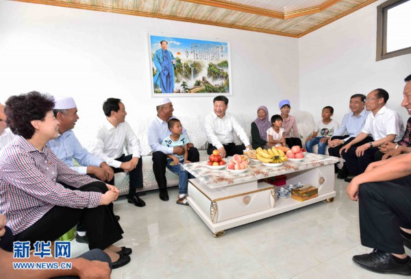 2016年7月19日,习近平总书记在宁夏银川市永宁县闽宁镇原隆移民村回族移民群众海国宝家中看望。 新华社记者 李涛/摄