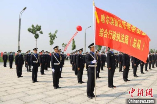 8日,哈尔滨新区综合行政执法总队挂牌成立。哈尔滨新区提供