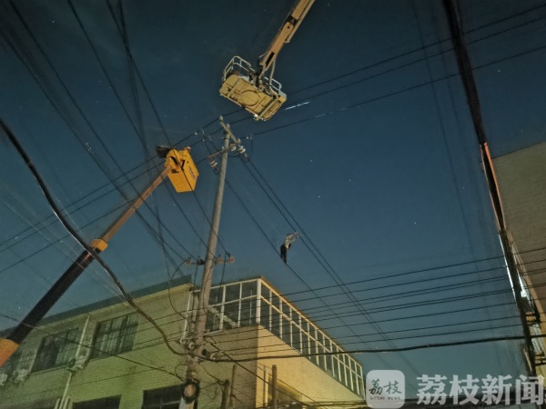 虽然围观群众和救援人员不停喊话希望电线杆上的男子停止冒险的举动,然而令人意想不到的是,该男子竟然使出了爬树的本领,继续向上层的10千伏线路进发。无奈之下,南夏墅供电所只能向常州供电公司配电抢修班汇报,要求将10千伏新联123线拉停,确保该男子不会因触电身亡。在常州供电公司调度控制中心发令后,19点30分,10千伏新联123线停电。