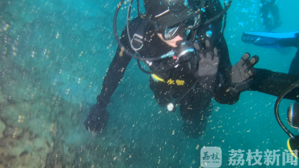 6月8日是世界海洋日,借着训练契机,队员们顺带把水底的垃圾清理了一遍。这期间,他们默契地用手势沟通。