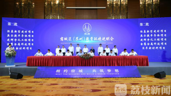 我苏网讯 6月9日下午,宿迁市宿城区在苏州举办“2020宿城区(苏州)投资环境说明会”,会上共达成29个项目投资协议,协议总投资109.3亿元,其中10亿元以上项目3个,5-10亿元项目8个,150余名苏州地区企业家代表出席活动,宿迁市宿城区委副书记、区长陈伟出席活动并致辞。