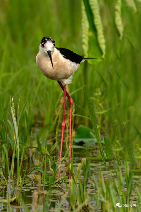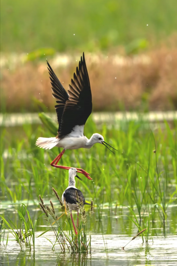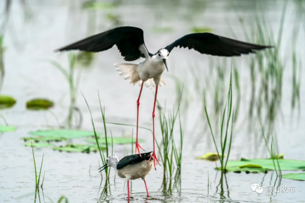 据了解,黑翅长腿鹬[yù]是湿地众多候鸟中的“美少女”,它身材修长,黑黑的翅膀、红红的长脚、尖尖的长嘴格外醒目。黑翅长腿鹬属于国家保护动物,是一种惹人喜爱的水鸟,它的嘴细长而笔直,体白翅黑,对比分明。个头不算太大,却长了一双30多厘米长的细腿,因此被称为“长腿美娘子”。