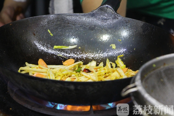 夜市东边,小王刚在这里做生意半个月。他是皖北人,今年29岁,和爱人在这里搭了个夫妻档,他炒菜,老婆收拾。