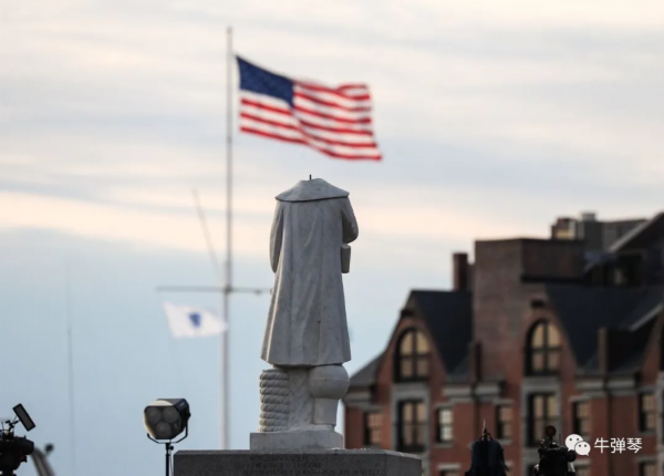 6月9日,一个愤怒之夜,在美国北部的波士顿,一座哥伦布的雕像被斩首了。