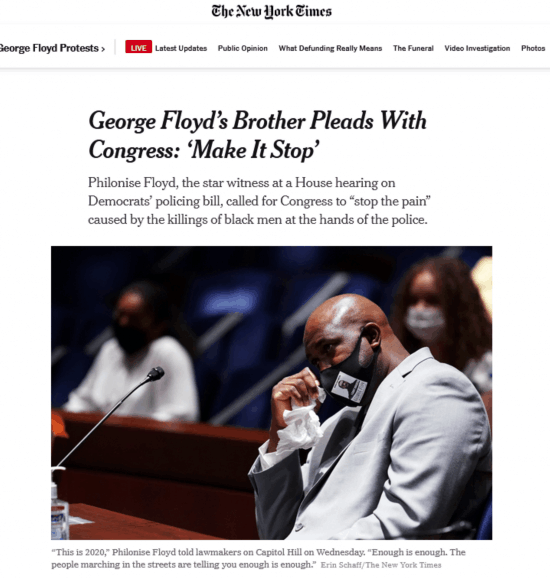 《纽约时报》报道称,菲洛尼斯的哥哥在遭遇警察执法期间死亡,已经引发了美国各地长达两周的大规模抗议活动。10日当天,菲洛尼斯在众议院司法委员会有关民主党警务(改革)法案的听证会上,言辞激动地请求国会对美国执法部门进行全面改革,从而应对警察的残暴行为以及系统性种族主义。