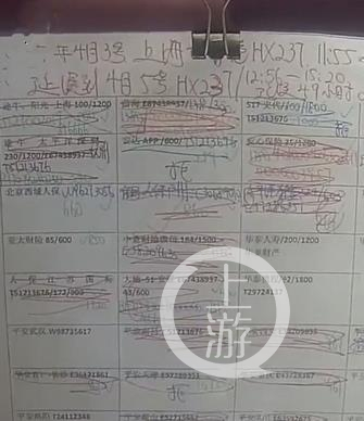 ▲警方搜出在李某家中大量笔记信息,记载着李某购买延误险所涉及航班的信息。图片来源/视频截图
