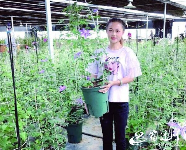 “大家好,这是铁线莲,它有‘爬藤皇后’的美称。你们可以看到,这些枝条像铁丝一样坚韧,花朵像莲花一样清新淡雅,因此而得名。今天,铁线莲有大苗、中苗、小苗,亲爱的们,可以随心选购喔。”6月9日,沭阳县章集街道大沈庄村新村干赵紫瑄正在花木大棚内进行直播。