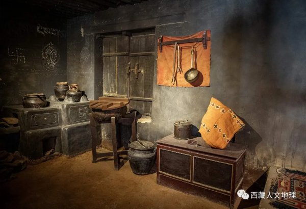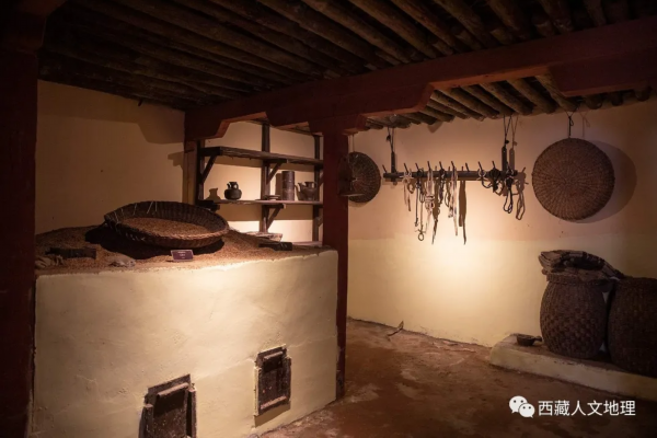 羌仓中的酒坊主要展示藏族的酒文化,从煮酒房、发酵房、窖藏房等房屋构造可以看出,历史上的西藏青稞酒制作几乎都是以家庭手工作坊的工艺酿造为主。